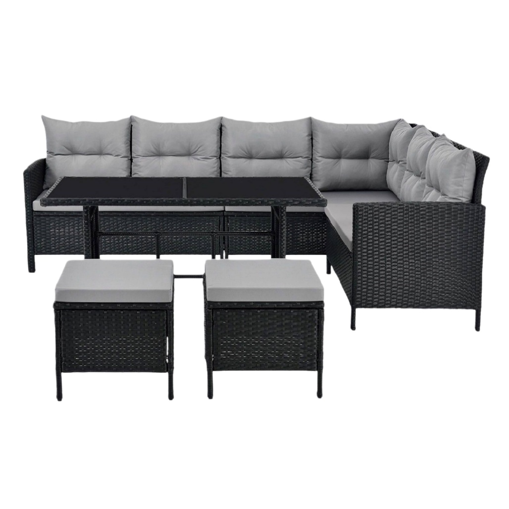 Canapé d'angle en résine tressée avec coussins - espace extérieur - 200 x 150 x 75